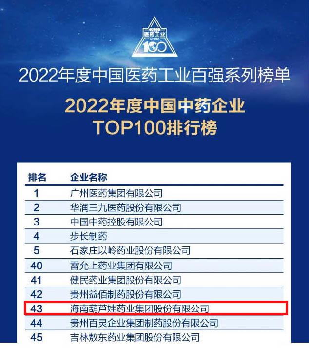 凯时KB88药业集团连续4年荣登“中国中药企业TOP100排行榜”,排名上升至第43位